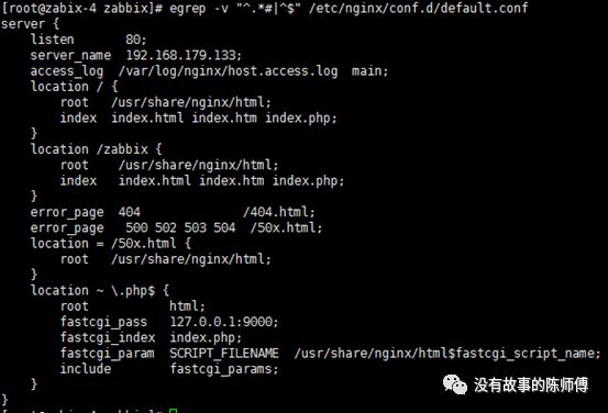 egrep -v '(^.*#|^$)' /etc/nginx/conf.d/default.conf