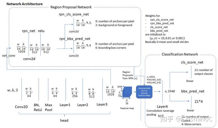 - 看到这里相信大家对整一个结构都十分清楚了,我们用一张图自行回顾一下从特征提取网络到RPN到RoI最后分类的各个细节: