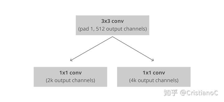 的卷积内核,其中两个并行卷积层的通道数取决于每个点的Anchor数量(k个)。