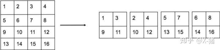 具体怎样1拆4,下面借用参考文章[3]中的一副图看的很清楚。图中示例的是1个4*4拆成4个2*2。因为深度不变,所以没有画出来。