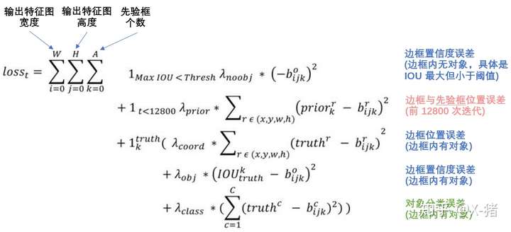 误差依然包括边框位置误差、置信度误差、对象分类误差。