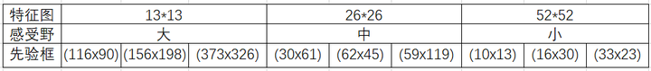 分配上,在最小的13*13特征图上(有最大的感受野)应用较大的先验框(116x90),(156x198),(373x326),适合检测较大的对象。中等的26*26特征图上(中等感受野)应用中等的先验框(30x61),(62x45),(59x119),适合检测中等大小的对象。较大的52*52特征图上(较小的感受野)应用较小的先验框(10x13),(16x30),(33x23),适合检测较小的对象。