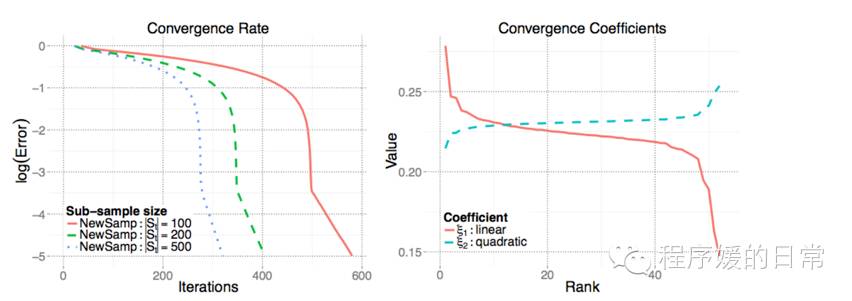 于是,这篇工作就是利用 subsampling technique + low-rank approximation。为啥 low-rank approximation 会好用呢,因为对于 second order 的方法,其绝大多数信息都会被存储于其 Hessian 矩阵的几个最大特征值里。利用这种思想,他们在 (Q^t)^{-1} 更新计算时就可以利用 sub-sampled Hessian 的 (r+1)-th 特征值的信息来完全近似。他们这种算法叫 NewSamp,可以实现从多项式时间到线性时间的收敛速率。