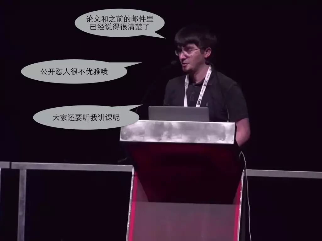 正当 Goodfellow 讲到 GAN 与其他模型的比较时,台下一位神秘人物站起来打断了演讲,自顾自地说了一大通话(视频片段可见:www.bilibili.com/video/av10431990/)。