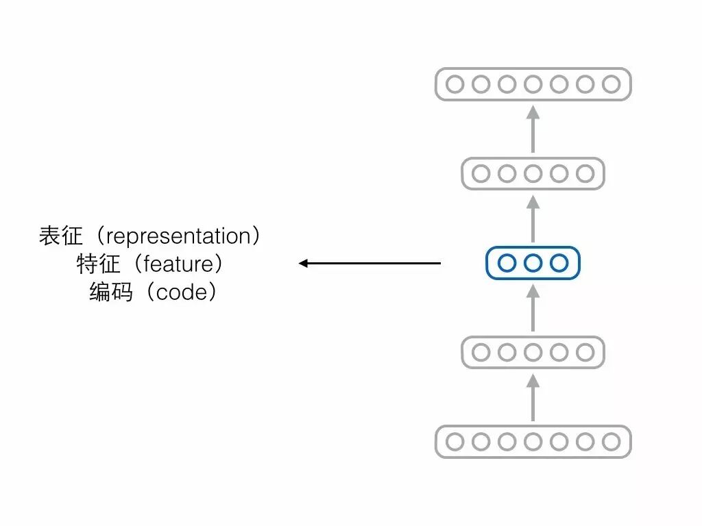 如果自编码器经过训练能够很好地重构样本,那意味着编码器和解码器中间的隐藏层节点保留了原始样本的重要信息,我们把中间这层节点构成的向量称为表征(representation)、特征(feature)或编码(code),这三个词其实可以当成同义词。