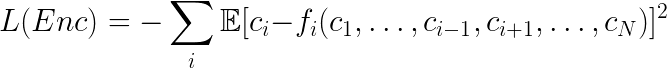 这显然不是想要的局面。为了将 c1 与 c2, c3 解耦,编码器就得尽可能让预测器猜不中,loss 上体现为: