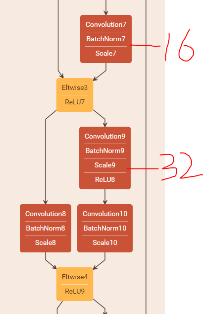 这是将网络结构借助ethereon绘制出来的部分截图,上面的红字代表这一层的卷积过滤器的数量,可以看到在filter数量加倍之后,shortcut结构没法直接相加了,所以原文中采用了PadChannel的结构,将多余的Channel全部补零,主要结构就是上图所示,先用一个average pooling层将feature map的size减半,再使用PadChannel增加16层的零filter层,我们将这种方法称为zero-padding法(亦即论文中的option A),这种方法的优点是接近于恒等层,不会引入新的参数。但是caffe目前不支持这种zero-padding的方法,所以我们需要向caffe中添加PadChannel层: