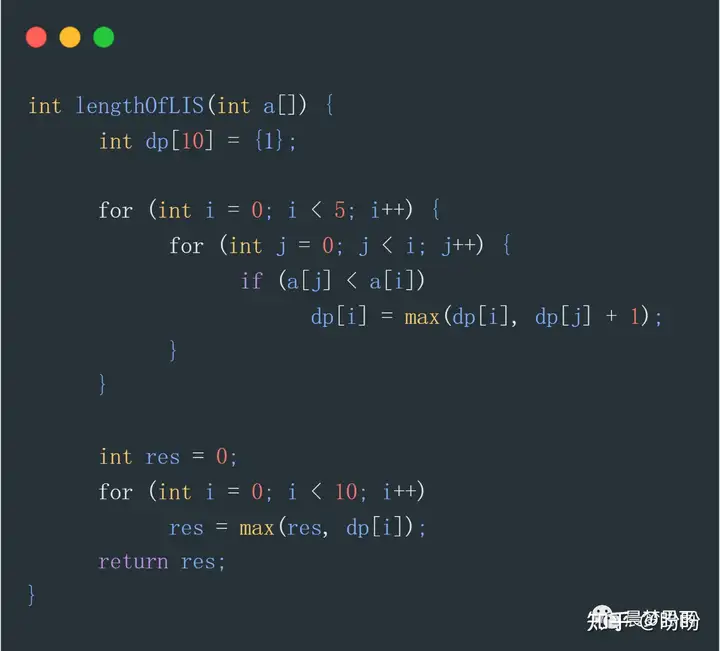 dp[i]表示以a[i]这个元素结尾的最长递增子序列的长度。