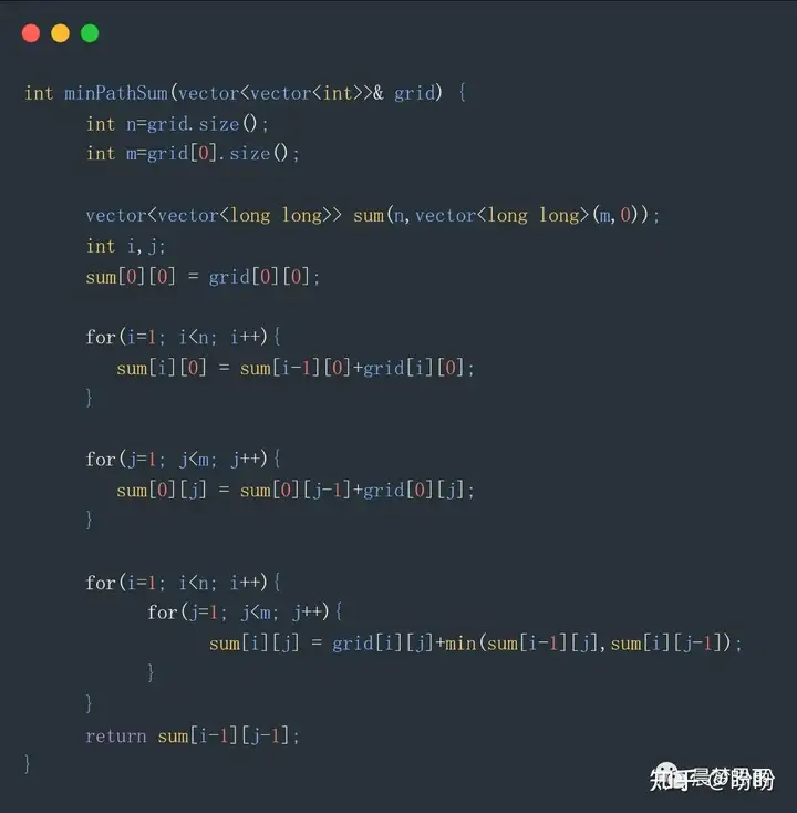 给定一个,包含非负整数的 m x n 网格。请找出一条,从左上角到右下角的路径。使得路径上,所有数字总和为最小,每次只能向下,或者向右移动一步。