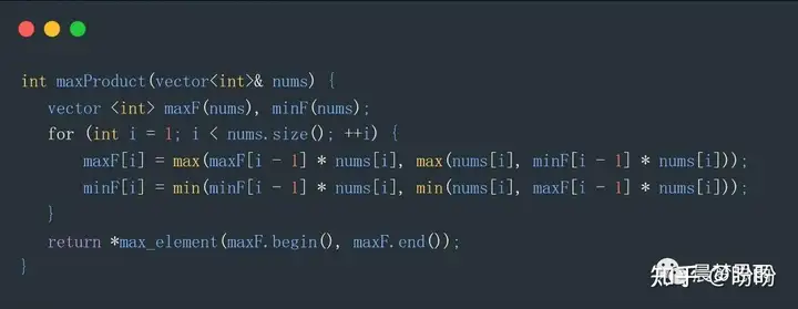 这里分为最大和最小是因为数组可能存在负数,最大值乘以负数变成较小值,最小值乘以一个负数也可能变成最大值。