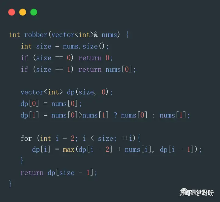 思路:当输入房间数为0,1,2时,这个很好判断,当输入房间数字大于3时,就要用到动态规划了,方程是: