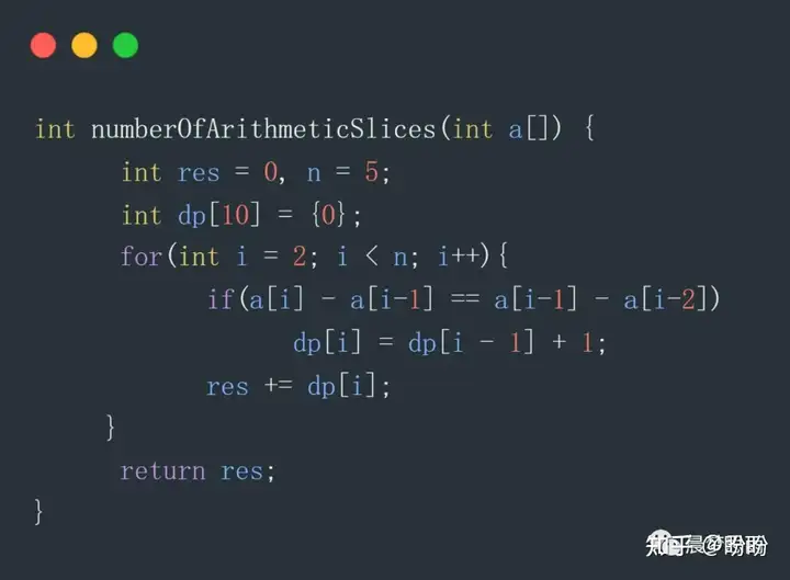 dp[i] 表示到i位置时,子数组的个数。数组长度大于3。
