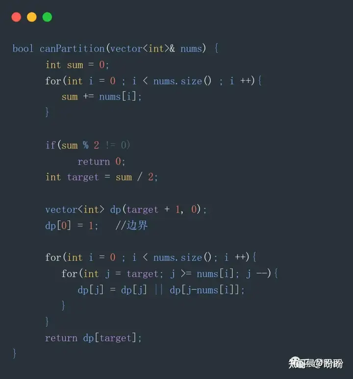 如果 dp[j - nums[i]] 为true的,说明可以组成 j-nums[i]这个数,再加上nums[i],就可以组成数字j。