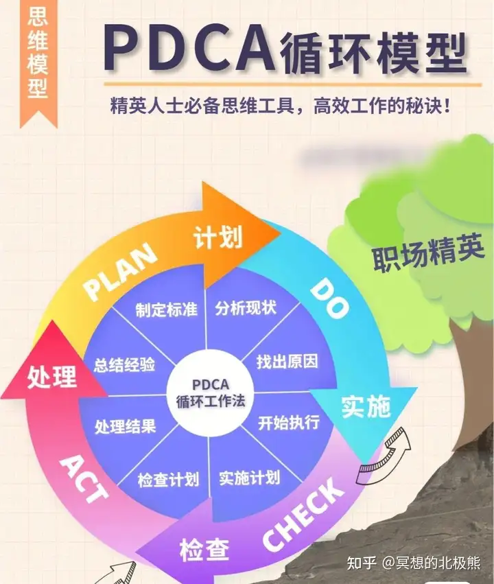PDCA循环模型是一个管理工具,可以帮助组织和个人实现自我完善和不断改进。它是基于“问题解决”的思想,通过循环,不断完善和优化过程,达到提高质量、效率、效果等目的。