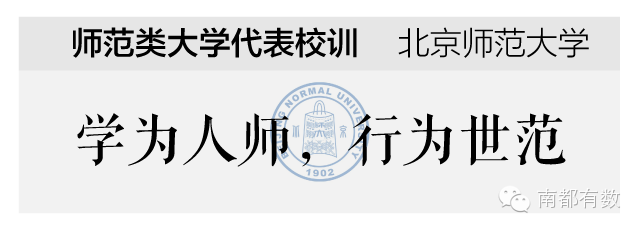 师范类院校提及“学”的情形比其他高校高一半,校训中还比其他类型高校更多地重视“人”,典型代表是北师大校训“学为人师,行为世范”。