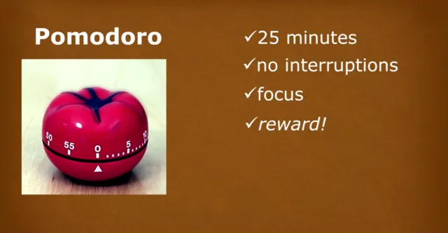 对拖延症say No↑番茄工作法不仅在Learning How to Learn这门课程里,在很多名人的采访里都有提及。所谓的番茄工作法,是由弗朗西斯科·西里洛于1992年创立的一种简单易行时间管理方法,具体而言就是选择一个待完成的任务,将定时器设为25分钟,专注工作,中途不允许做任何与该任务无关的事,直到定时器响为止。顺便补充一下,之所以叫番茄工作法而不叫香蕉橘子工作法,是因为在欧洲定时器最常见的造型就是番茄。番茄工作法要点:1. 25分钟。这个时长其实可以因人而异,因事而异,比如作家Amy Alkon为自己写作设定的时间一般是一个小时一组。只是25分钟相对来说比较容易,大多人都可以做到。