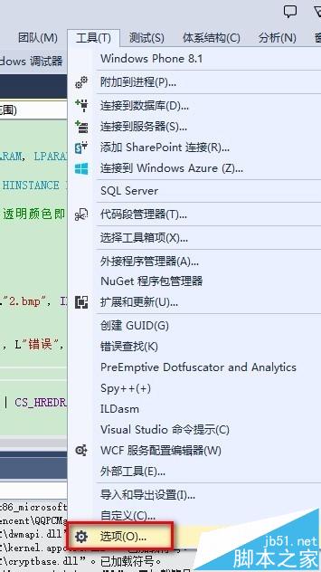 1、打开VS2013,点击菜单“工具”-“选项”。