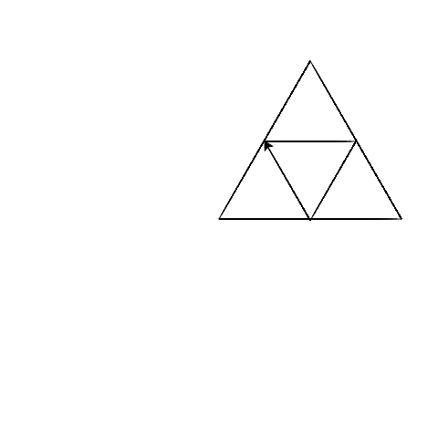 import turtle turtle.fd(200) turtle.left(120) turtle.fd(200) turtle.left(120) turtle.fd(200) turtle.penup() turtle.goto(50,85) turtle.pendown() turtle.done() turtle.left(120) turtle.fd(100) turtle.left(240) turtle.fd(100) turtle.left(240) turtle.fd(100)