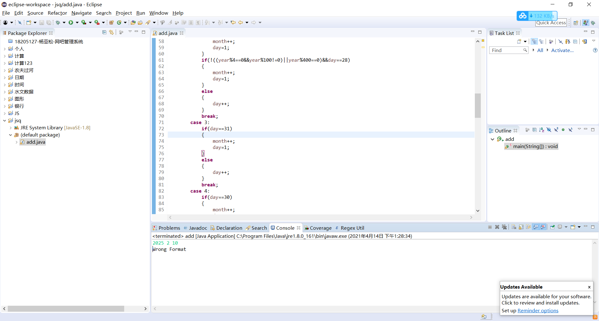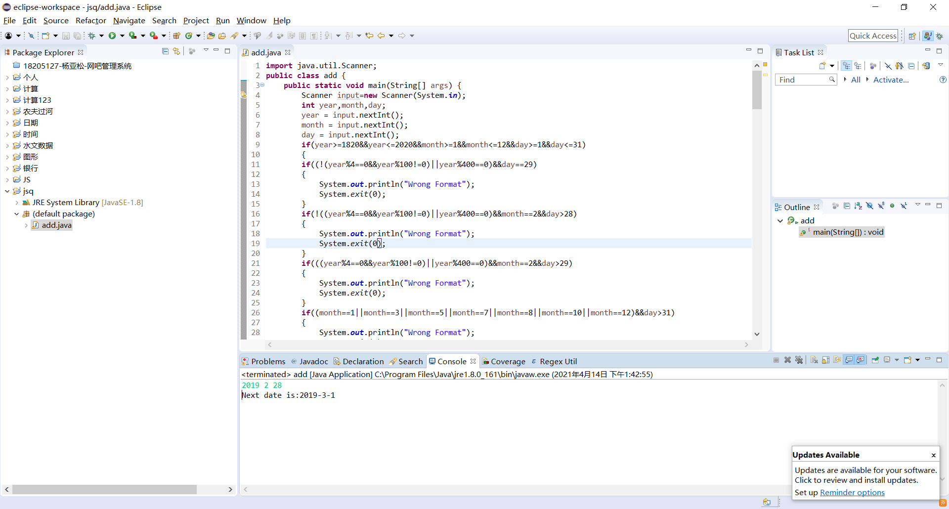 System.out.println("Next day is:"+date.year+"-"+date.month+"-"+date.day);
