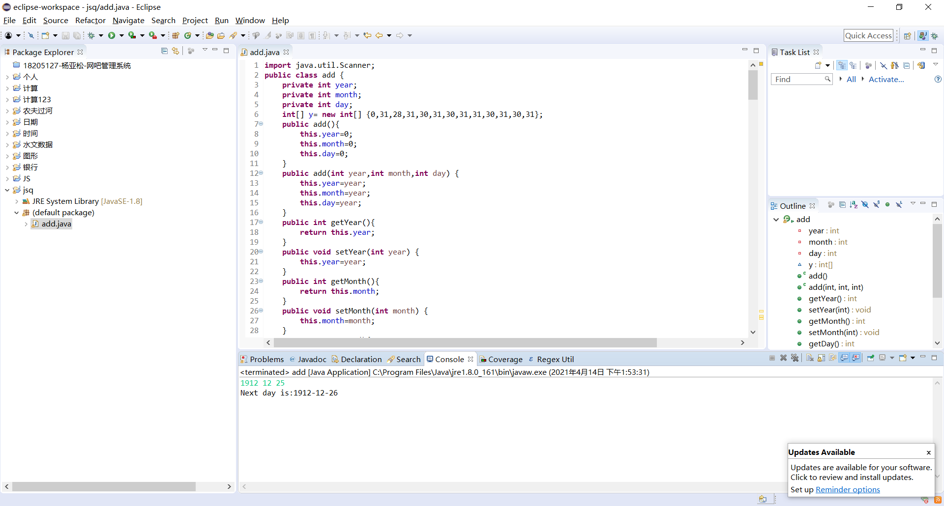 1912 12 25 下一天是1912 12 26 ,算法部分代码