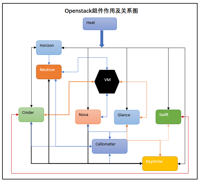 Heat:提供了基于模板来实现云环境中资源的初始化,依赖关系处理,部署等基本操作,也可以解决自动收缩,负载均衡等高级特性。