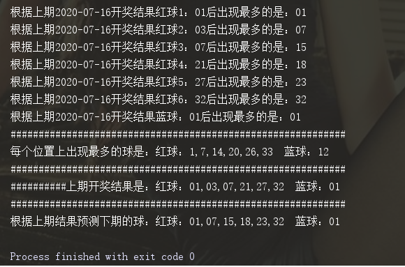 自娱自乐,根据上一期中奖数字,取下一期经常出现的数字,(并不准,不可能中奖,纯粹自娱自乐)
