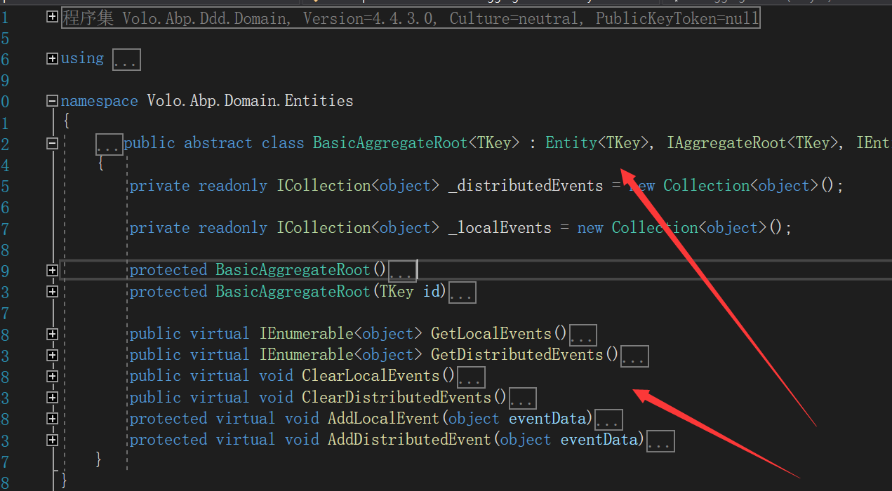 基础聚合根 增加了 ID 和 分布式事件总线 同时也实现了Entity<TKey>