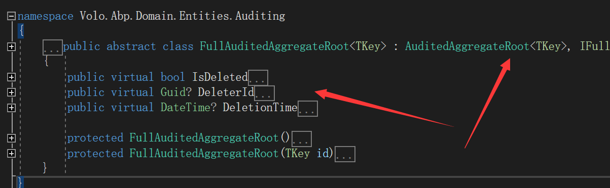 到这里 也就是 完整审核聚合根 FullAuditedAggregateRoot 是最全的 含有 领域事件 ID 删除 修改 创建的 相关属性