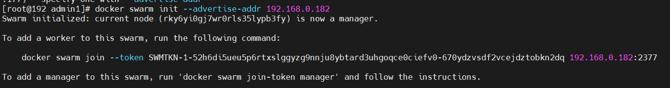 docker swarm init --advertise-addr 192.168.0.182
