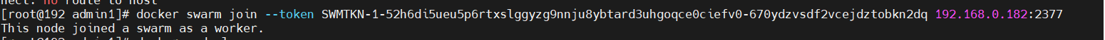 docker swarm join --token SWMTKN-1-52h6di5ueu5p6rtxslggyzg9nnju8ybtard3uhgoqce0ciefv0-670ydzvsdf2vcejdztobkn2dq 192.168.0.182:2377