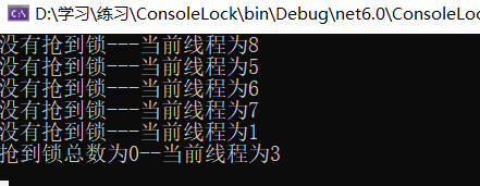 Console.WriteLine($"抢到锁总数为{total}--当前线程为{Thread.CurrentThread.ManagedThreadId}");