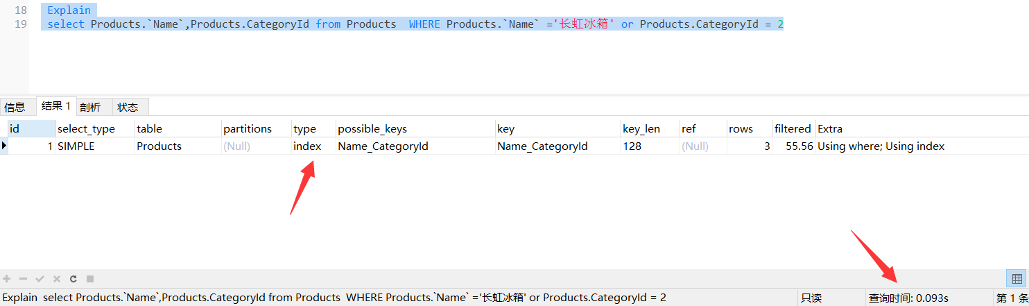 语句 还有 or 的情况 可以 在索引中 添加 or 查询的字段 实现索引覆盖