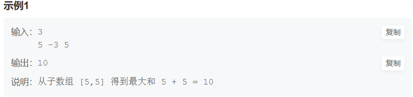 输出一个整数,为原数组的非空子数组的最大可能和。