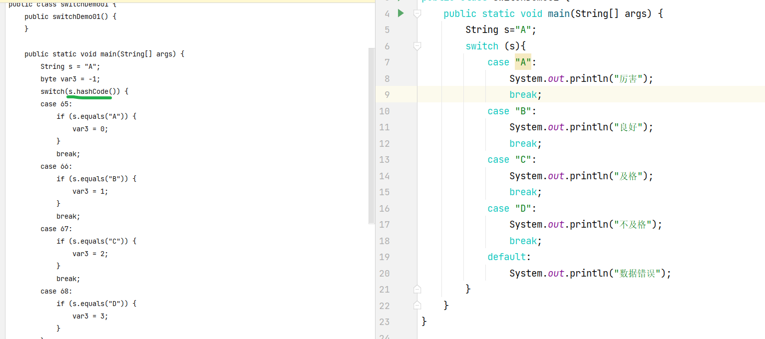 switch (s){