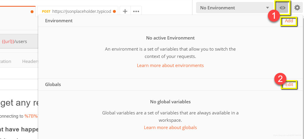 2、输入URL: https://jsonplaceholder.typicode.com/users;将链接的域名部分替换为参数,例如{{url}}。请求url现在应该是{undefined{url}}/users。