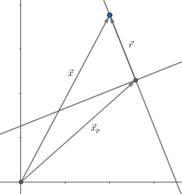 \[\mathbf{x}=\mathbf{x}_p+\mathbf{x}_r=\mathbf{x}_p+r\cdot\frac{\mathbf{w}}{||\mathbf{w}||}\\ \begin{aligned} h(\mathbf{x}) &=h\left(\mathbf{x}_{p}+r \frac{\mathbf{w}}{\|\mathbf{w}\|}\right) \\ &=\mathbf{w}^{T}\left(\mathbf{x}_{p}+r \frac{\mathbf{w}}{\|\mathbf{w}\|}\right)+b \\ &=\underbrace{\mathbf{w}^{T}\mathbf{x}_{p}+b}_{h\left(\mathbf{x}_{p}\right)}+r \frac{\mathbf{w}^{T} \mathbf{w}}{\|\mathbf{w}\|}\\ &=\underbrace{h\left(\mathbf{x}_{p}\right)}_{0}+r\|\mathbf{w}\| \\ &=r\|\mathbf{w}\| \end{aligned} \]\(\therefore r=\frac{h(\mathbf{x})}{\|\mathbf{w}\|},|r|=\frac{|h(\mathbf{x}|)}{\|\mathbf{w}\|}\)