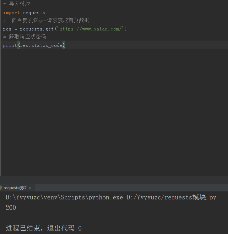 # print(res.status_code) # 获取响应状态码,如下图所示