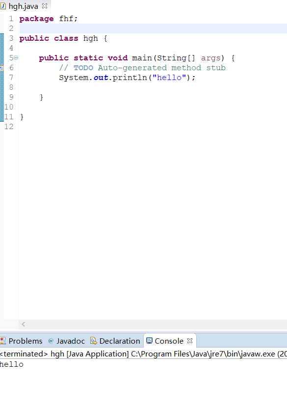 public static void main(String[] args) { // TODO Auto-generated method stub System.out.println("hello");
