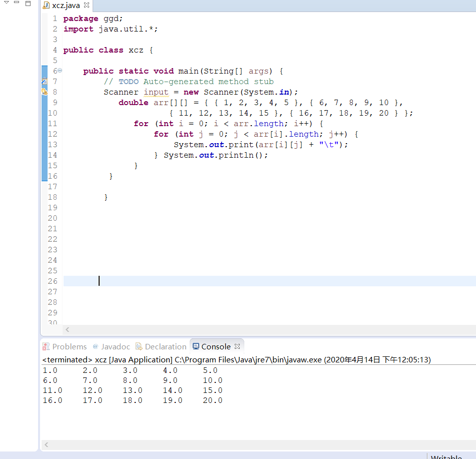 System.out.print(arr[i][j] + "\t");