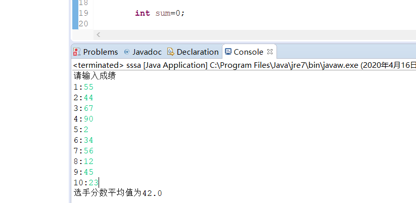 System.out.println("选手分数平均值为"+sum/8.0);