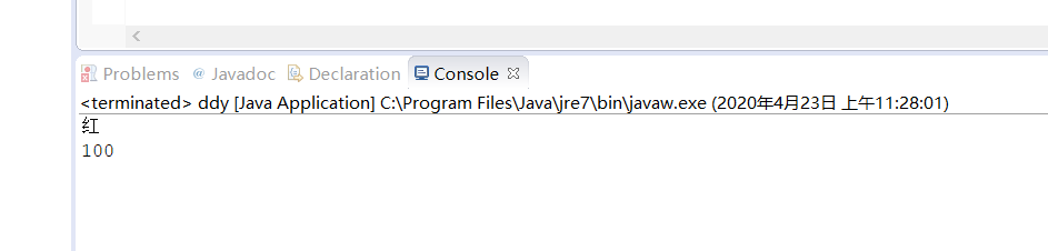 System.out.println("颜色为"+color);