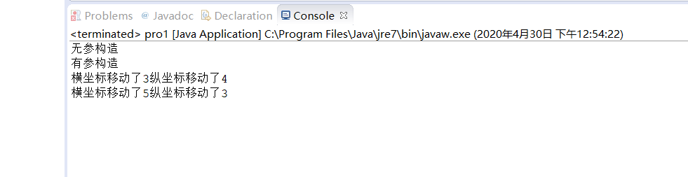 System.out.println("横坐标移动了"+x+"纵坐标移动了"+y);