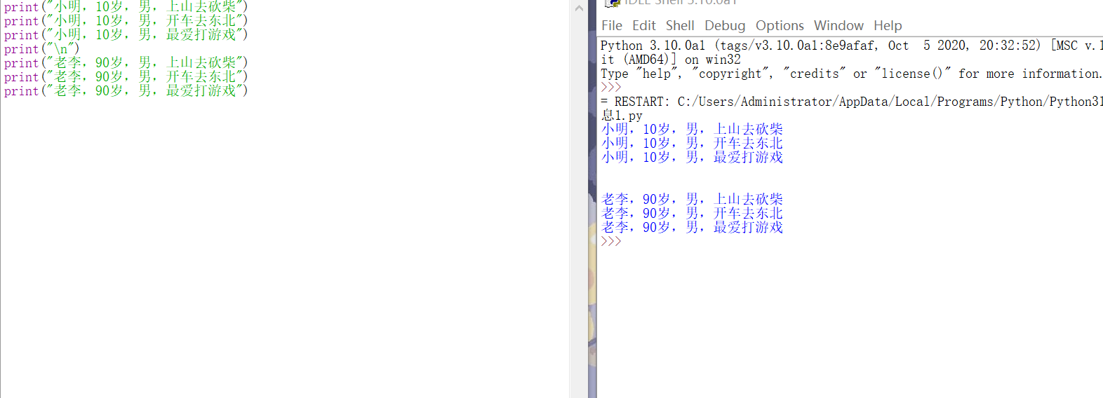 print("老李,90岁,男,开车去东北")