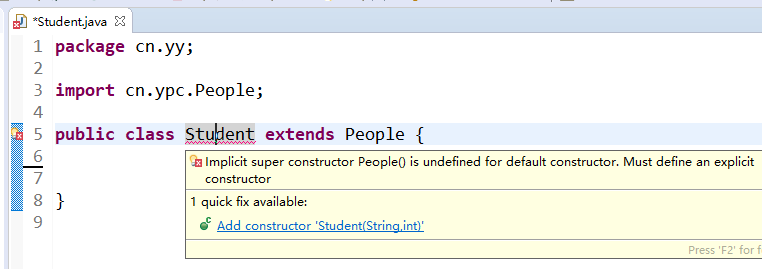 当我们自动填写父类的构造方法的时候,IDE又报错了,类似之前的错误,也是构造方法找不到的问题。