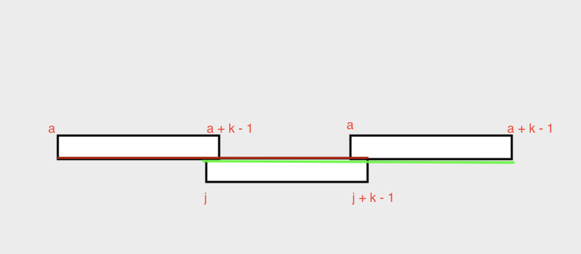 先把 $ gsum(i,a,a+k-1)+gsum(i,j,j+k-1)-dec $ 这个东西转化一下。为了方便,把它叫做 \(add\) 。