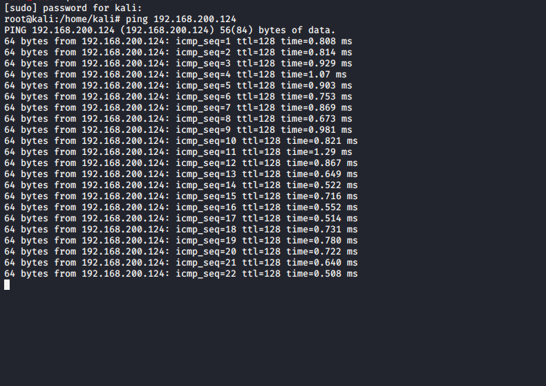 切换到roo中, 通过su -提权(注意有横线),运行命令tcpdump -ieth0 icmp切换到任何一台攻击机中, ping任何一台靶机。