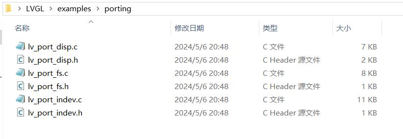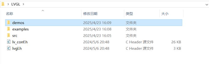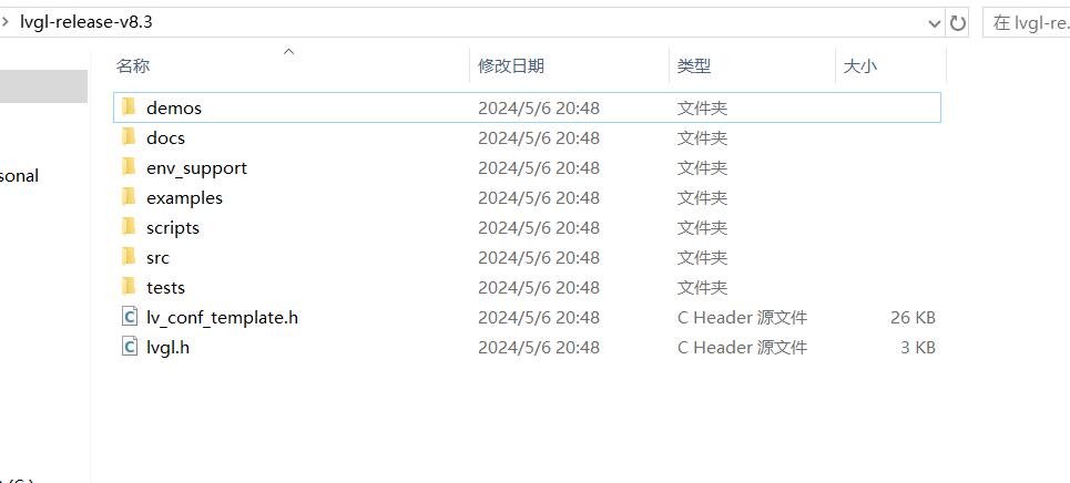 将下载好的文件整理,多余的文件删除,并将lv_conf_template.h等带template的文件改名: