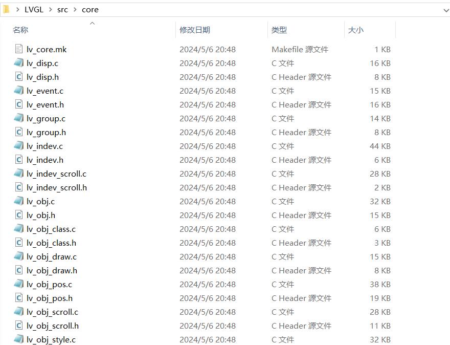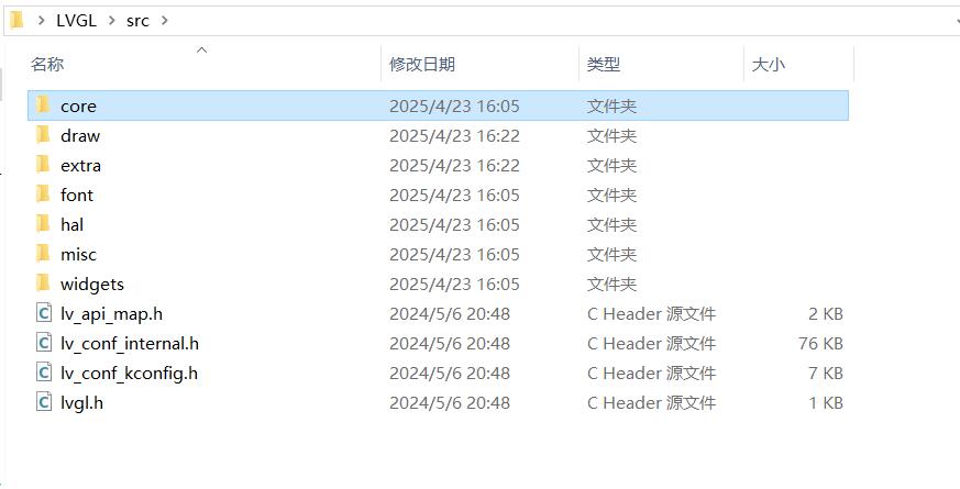 本工程使用LVGL V8.3.11,打开文件并粗略整理后如下: