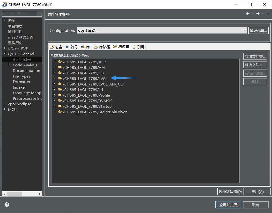 讲LVGL整理好的文件夹导入工程,这里本工程选择的是BLE下的从机设备工程,并添加到属性。