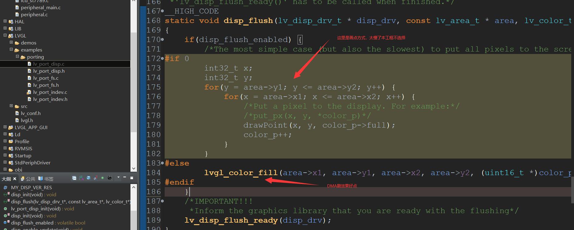 这里自行搜索自己的屏幕的驱动,然后适配画点函数以及DMA传输,这里本工程使用DMA阻塞刷频,也可使用双缓存非阻塞方式,但是自行搞中断。